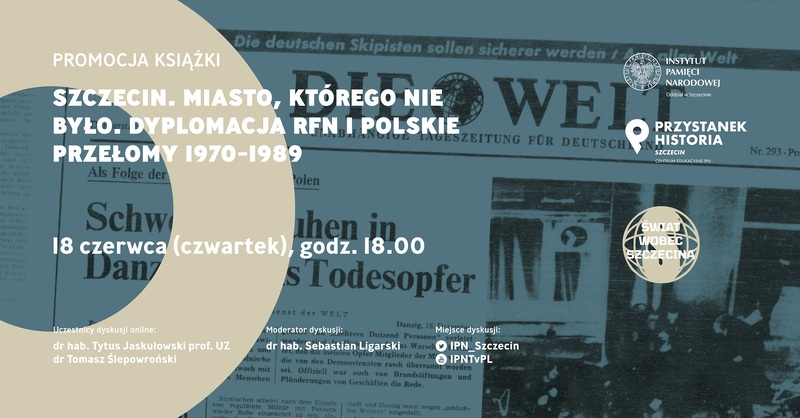 Zapraszamy do obejrzenia zapisu dyskusji wokół najnowszej książki dr. hab. Tytusa Jaskułowskiego, prof. Uniwersytetu Zielonogórskiego, „Szczecin. Miasto, którego nie było. Dyplomacja RFN i polskie przełomy 1970–1989”.
