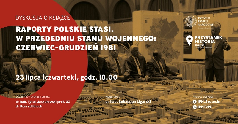Na fanpage'u Facebook @IPN.Szczecin oraz YouTube IPNtvPL dyskusja wokół książki „Raporty polskie Stasi. W przededniu stanu wojennego: czerwiec-grudzień 1981” opracowanej przez Tytusa Jaskułowskiego, Filipa Gańczaka, Konrada Knocha, Piotar Abryszeńskiego, Ewę Pejaś. Publikację wydał Oddział Instytutu Pamięci Narodowej w Szczecinie.