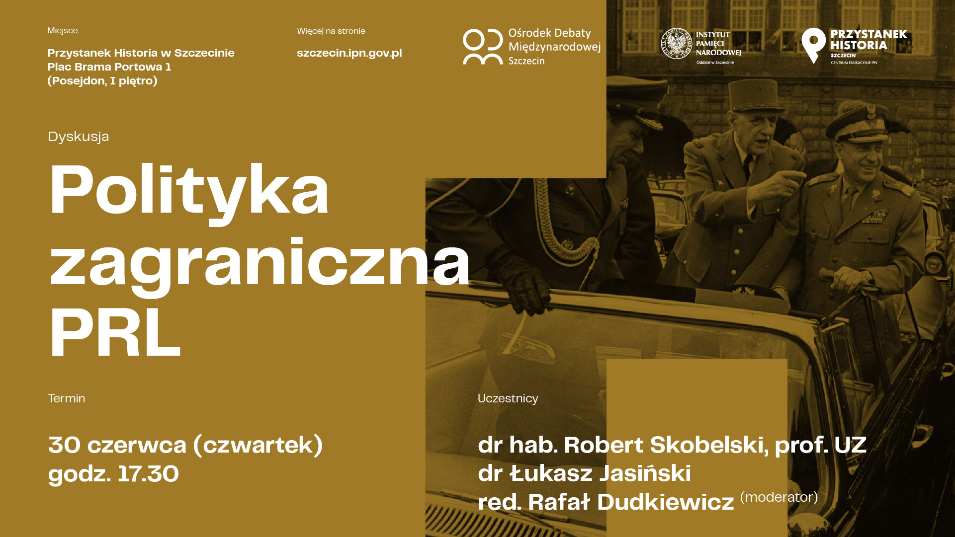 W czwartek (30.06.) zapraszamy do Przystanku Historia w Szczecinie (Brama Portowa 1, Posejdon, p.1), godz. 17:30. Gośćmi będą dr hab. Robert Skobelski, prof. UZ i dr Łukasz Jasiński, spotkanie poprowadzi red. Rafał Dudkiewicz.