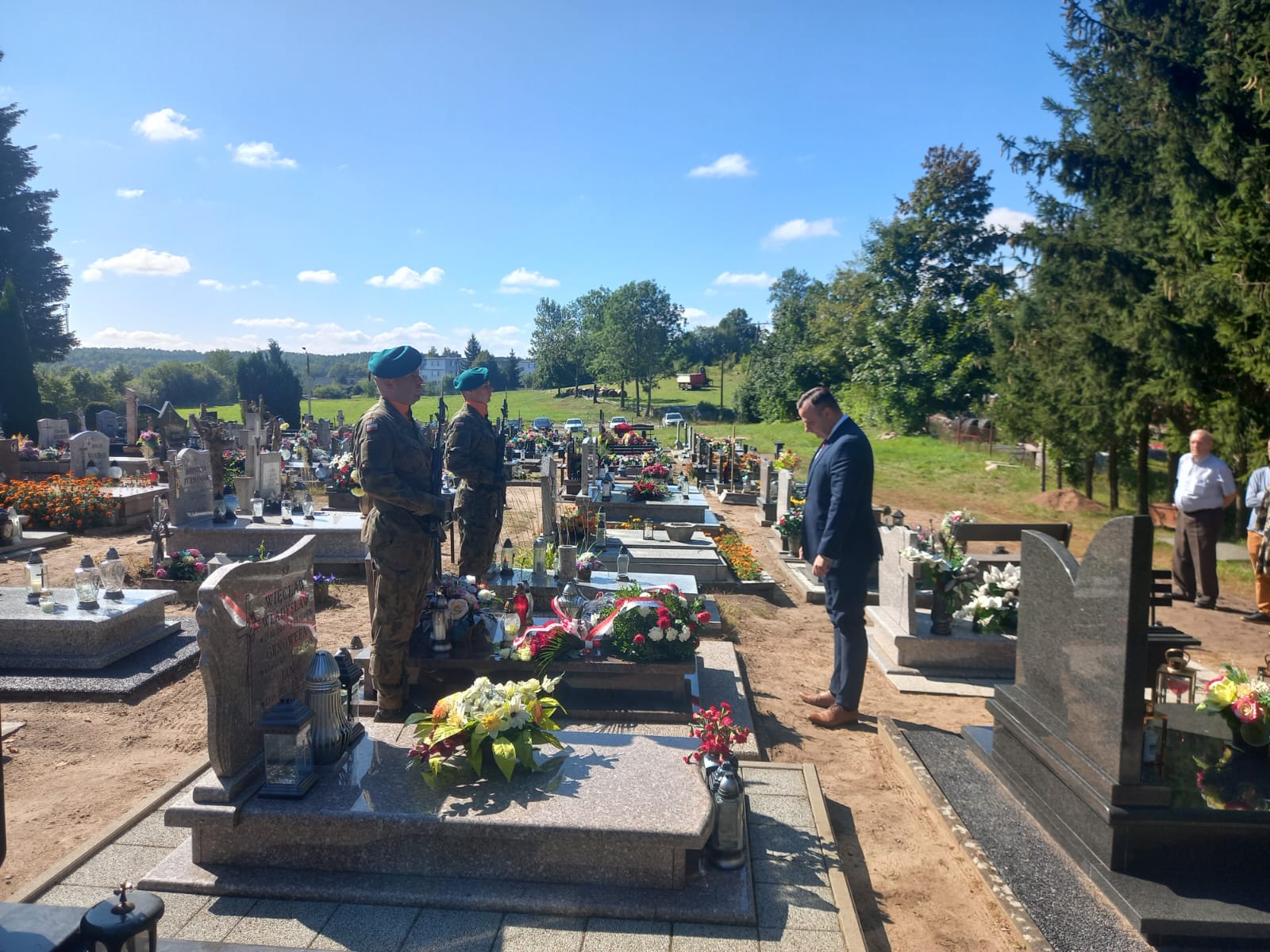 Na grobach tych złożyliśmy wiązanki biało-czerwonych kwiatów i zapaliliśmy symboliczne znicze. Przy każdym z miejsc spoczynku Westerplattczyków wojsko - żołnierze różnych jednostek - wystawiło wartę honorową a delegacjom IPN towarzyszyły często rodziny pochowanych bohaterów i władze lokalne oraz duchowni.