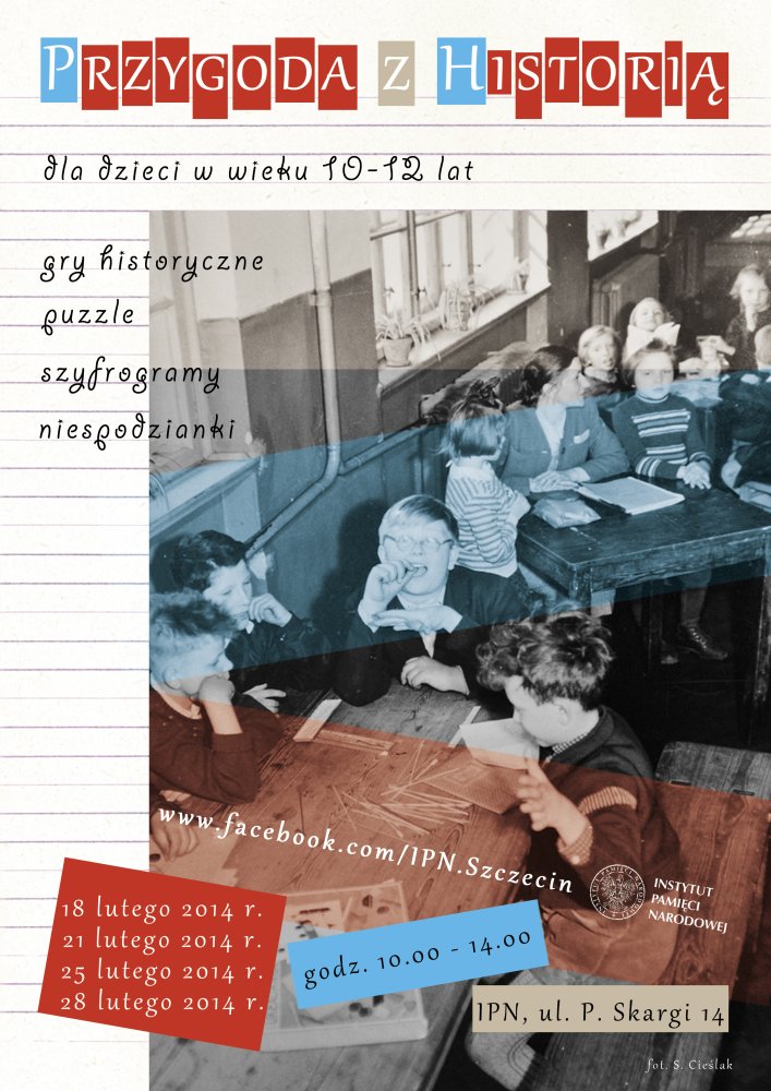IPN w Szczecinie zaprasza dzieci w wieku 10–12 lat do aktywnego spędzenia ferii zimowych. W ramach akcji organizujemy cztery spotkania warsztatowe na tematy związane z II wojną światową i okresem PRL. Każdy dzień będzie dotyczył innych zagadnień, a zajęcia będą urozmaicane nie tylko różnymi formami (puzzle, szyfrogramy, zagadki i prace plastyczne), ale i możliwością „dotknięcia" historii, poprzez poznanie losów wojennych rówieśników, udział w grach i zabawach naszych rodziców i dziadków czy oglądanie i słuchanie bajek z ich dzieciństwa.