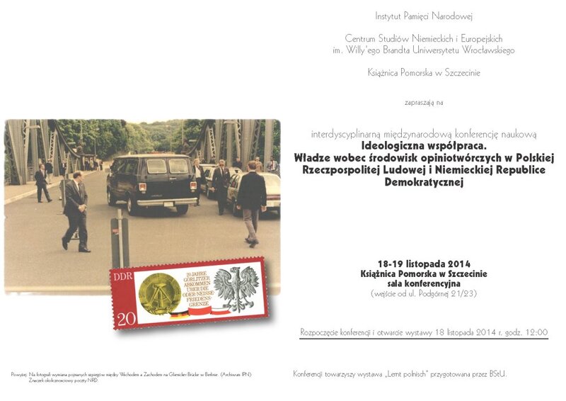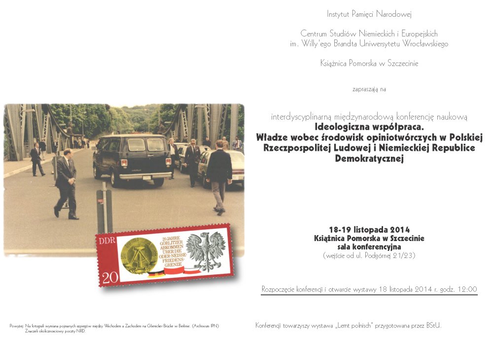 Międzynarodowa konferencja „Ideologiczna współpraca. Władze wobec środowisk opiniotwórczych w Polskiej Rzeczpospolitej Ludowej i Niemieckiej Republice Demokratycznej” – Szczecin, 18–19 listopada 2014