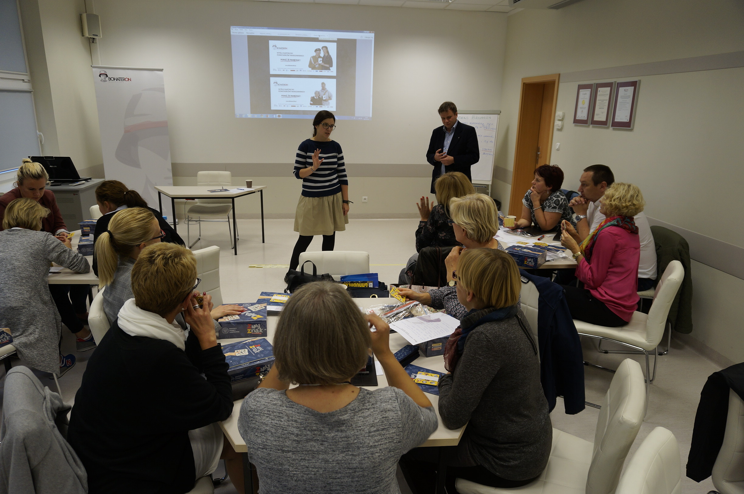 21 września 2017 r. odbyło się seminarium dla nauczycieli z województw zachodniopomorskiego i lubuskiego. W czasie czterogodzinnego spotkania w Zachodniopomorskim Centrum Doskonalenia Nauczycieli w Szczecinie, nauczyciele wysłuchali wykładu na temat fenomenu Polskiego Państwa Podziemnego, wzięli udział w warsztatach na temat historii mówionej oraz pozaformalnych metod edukacji, a także rozegrali dwie gry edukacyjne: „ZnajZnak” (przygotowany przez IPN) oraz „Cenzura” wyprodukowana w ramach akcji „BohaterON”. Zajęcia poprowadzili Grzegorz Czapski i dr Zofia Fenrych ze strony IPN oraz Katarzyna Kaźmierczak i Martyna Niewójt ze strony „BohaterON”. Seminarium było jednym z elementów całej akcji związanej z upamiętnieniem Powstania Warszawskiego i jego uczestników. Przed uczestniczącymi w projekcie nauczycielami stoi obecnie kilka zadań do wykonania wraz z uczniami. Finał akcji przewidziany został na maj 2018 r. Zainteresowanych zapraszamy na stronę: https://bohateron.pl/