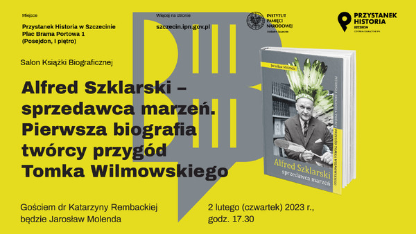 27/01/2023Przystanek Historia: „Alfred Szklarski – sprzedawca marzeń. Pierwsza biografia twórcy przygód Tomka Wilmowskiego" [ROZMOWA O KSIĄŻCE] – Szczecin, 2 lutego 2023.