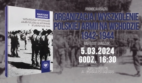 05/03/2024Promocja książki . "Organizacja i wyszkolenie Armii Polskiej na Wschodzie w latach 1942-1944", 5 marca, Księgarnia IPN, al. Wojska Polskiego 5, godz. 16.30